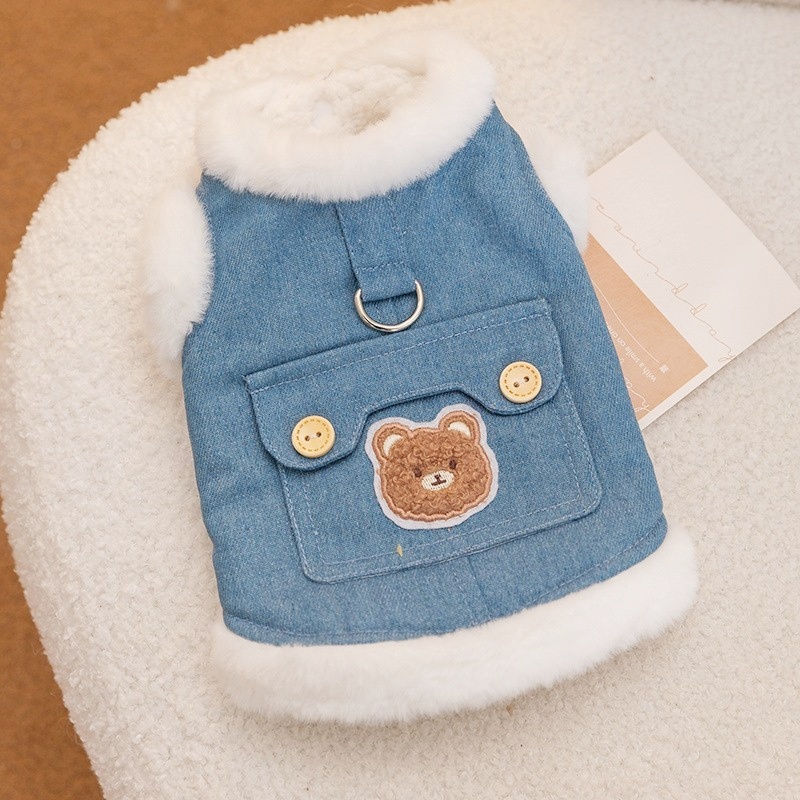 Winter Fleece Pet Dog Clothes Bear Print Dog Down Coat Warm Soft Puppy Vest Jacket Fashion Cat Jacket Coat Cute Pet Dog Costumes